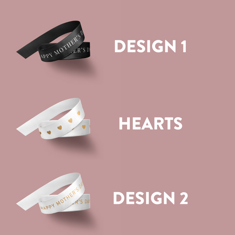 - 3 designs | 5 ribbon colours + 5 print colours