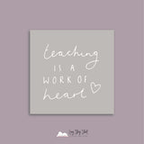 Teaching is a work of Heart Square Teacher Appreciation Vinyl Label Pack Matte/Gloss